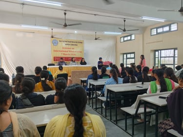 The program began with a heartfelt welcome by the College Incharge, Mr. Jashanjot Singh Johal, who honored both the speakers by presenting them with bouquets and a traditional phulkari as a token of respect. In his address, he highlighted the importance of women in our lives and emphasized that society progresses only when women are respected, empowered, and given equal opportunities.