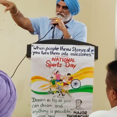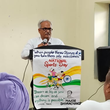 Principal,Dr. Jagsir Singh Brar reminded everyone that the day was celebrated in honor of Major Dhyan Chand, the “Wizard of Hockey,” whose legacy continues to inspire athletes worldwide.He encouraged students to draw inspiration from his life and contributions, urging them to not only excel in academics but also to lead a balanced life where sports play an integral role in shaping their physical and mental well-being.